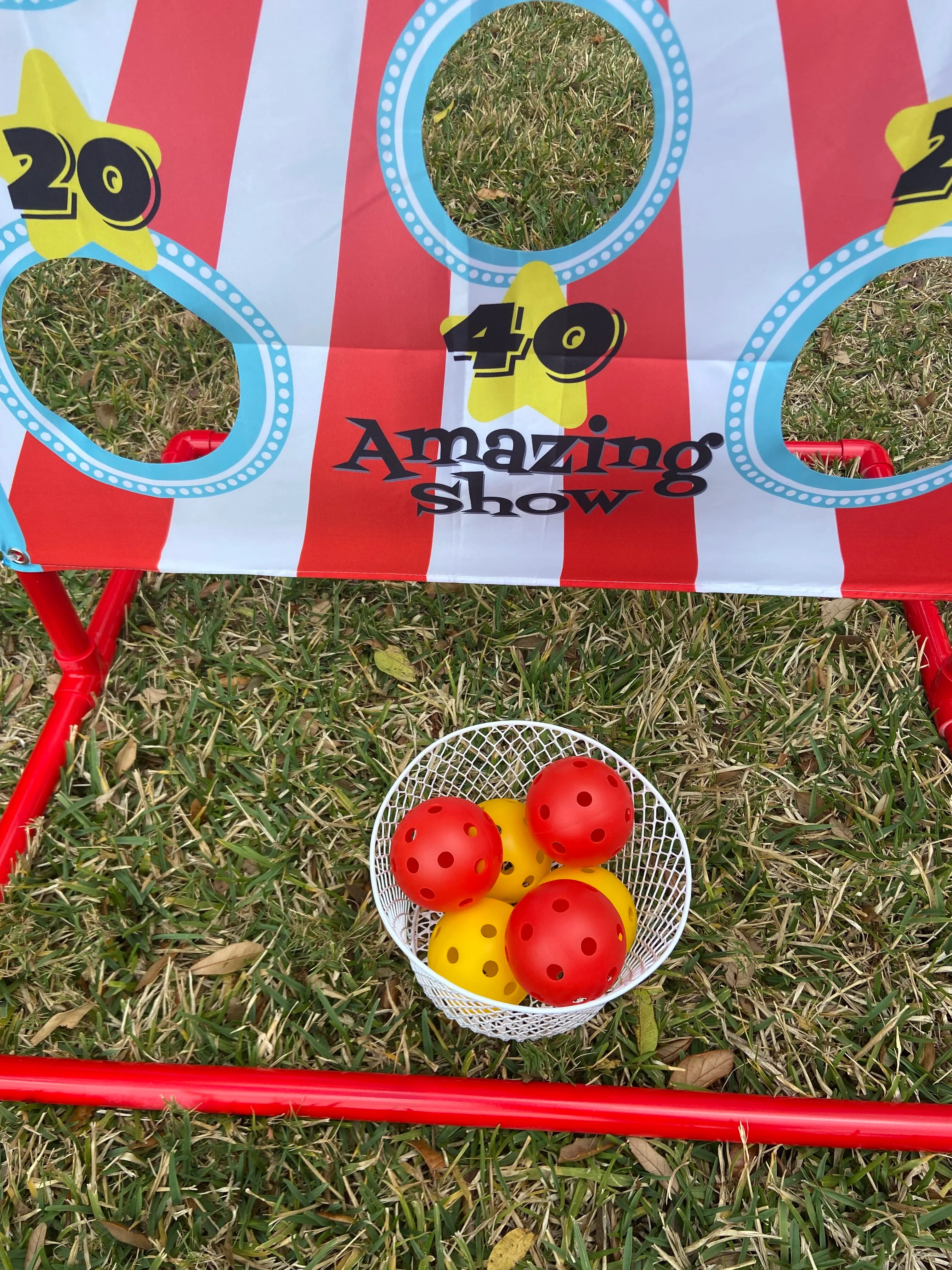Step right up and experience the joy of the carnival right at your event with our Clown Toss rental! Perfect for birthday parties, school fairs, or community gatherings, this classic game brings smiles and laughter to all ages. The Clown Toss features vibrant, colorful clown faces with wide various holes to toss your ball through. Aim carefully and toss to score points, creating friendly competition among players. Our Clown Toss is crafted with high-quality, durable materials to ensure safety and longevity. Its lightweight design makes it easy move, allowing you to transform any space into a fun-filled carnival atmosphere in minutes. The game includes multiple balls in assorted colors, adding to the visual excitement. Not only is Clown Toss a fantastic source of entertainment, but it also helps develop hand-eye coordination and precision. Whether you're hosting a small backyard gathering or a large festival, this engaging game promises endless fun and excitement. Rent Clown Toss today and watch as it becomes the centerpiece of your event. Delight your guests with a timeless carnival experience that will have them talking long after the last toss!