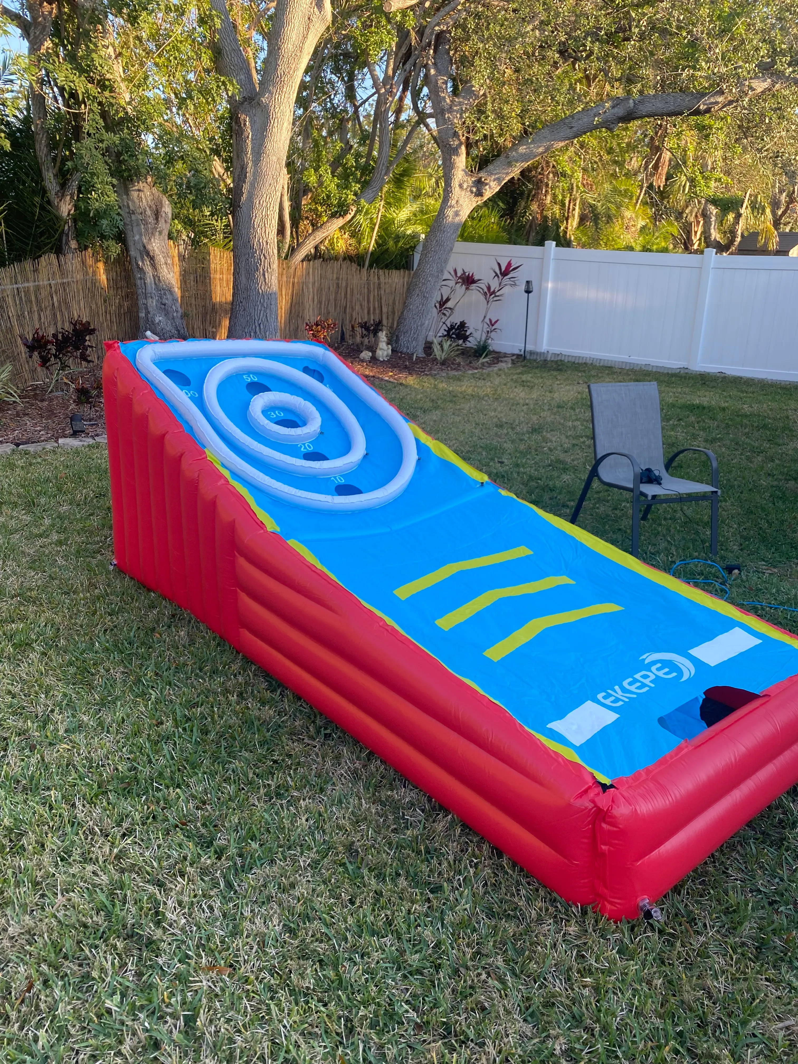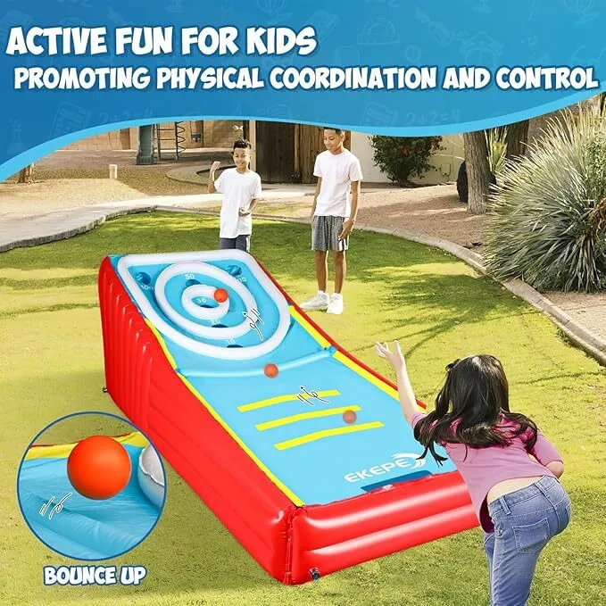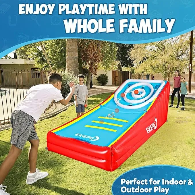 Introducing the ultimate party game: Inflatable Giant Skee Ball! Transform any event into a carnival extravaganza with this larger-than-life version of the classic arcade favorite. Perfect for birthdays, corporate events, festivals, or backyard barbecues, our inflatable Skee Ball is designed to deliver hours of fun and friendly competition for all ages. Crafted from durable, high-quality materials, this inflatable game is both easy to set up and safe for players. Its vibrant colors and eye-catching design are sure to draw a crowd. The inflatable lanes and targets mimic the traditional Skee Ball experience, challenging players to roll the perfect shot and rack up points. Renting our Inflatable Skee Ball is a hassle-free experience. We provide everything you need and will deliver, set up and remove when the party is over. Our customer service team is ready to assist with any questions you may have, ensuring a seamless rental process from start to finish. Elevate your next gathering with the thrill of Inflatable Skee Ball and watch as guests of all ages delight in the nostalgia and excitement of this beloved game. Book now to guarantee a memorable and entertaining event!