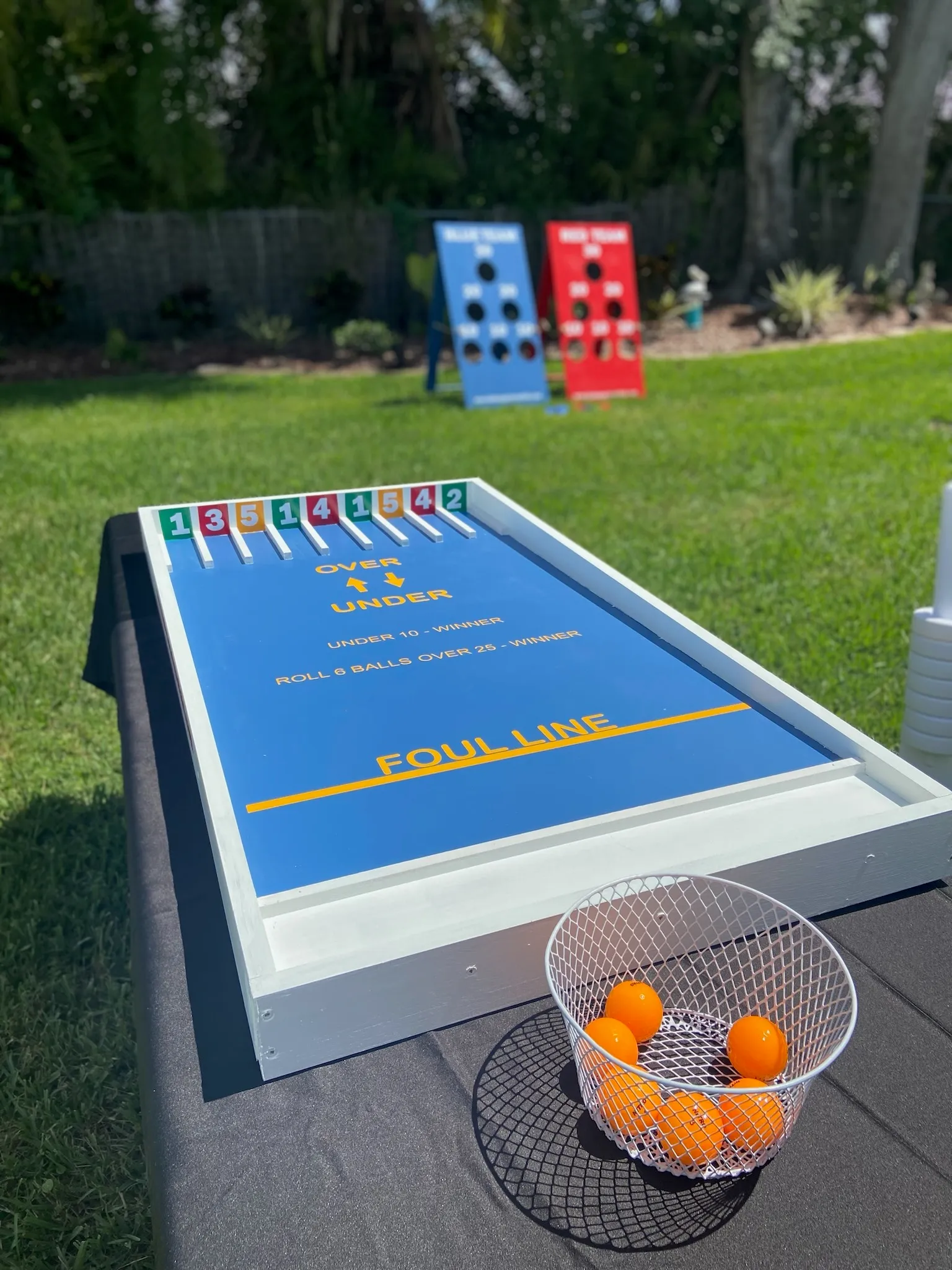 **Experience the Thrill with Over Under: Your Ultimate Party Game Rental!** Elevate your next gathering with Over Under, the exhilarating party game that promises endless laughter and excitement! Perfect for any occasion, this game challenges players to roll the balls in attempt to get less than ten or more than 50 points to win! It’s simple, addictive, and guarantees to keep everyone on their toes. Why rent Over Under from us? Here’s why: - **Easy Setup:** No complex rules or lengthy instructions. Just place on a table and you’re ready to play! - **Inclusive Fun:** Suitable for all ages, making it a hit at family reunions, birthday parties, or casual get-togethers. - **Compact & Portable:** Take the fun anywhere! Affordable Rental Rates:** Enjoy premium entertainment without breaking the bank. Flexible rental periods available to fit your schedule. Rent Over Under today and transform your event into an unforgettable experience. This game is your ticket to a night of unforgettable memories. Don’t miss out—book now and get ready to guess, laugh, and cheer your way to victory!